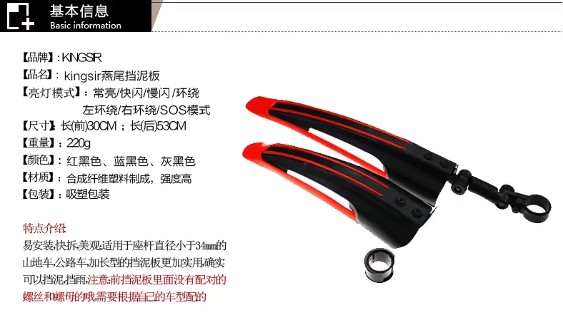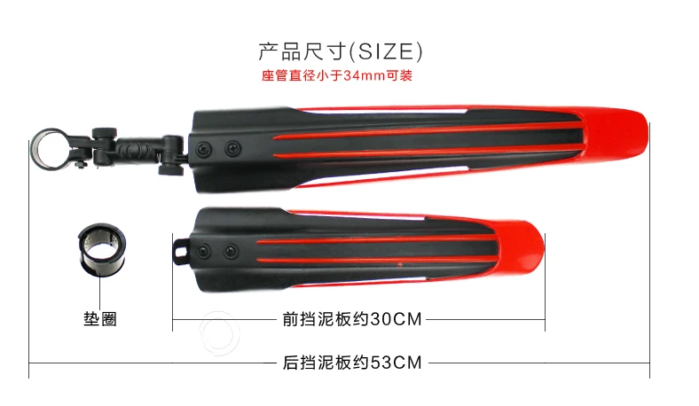 适用于座杆直径小于34mm的各种山地车,公路车,加长型的挡泥板更加实用,确实可以挡泥、挡雨
