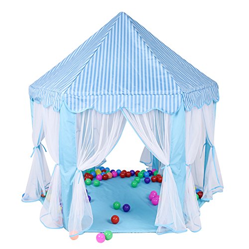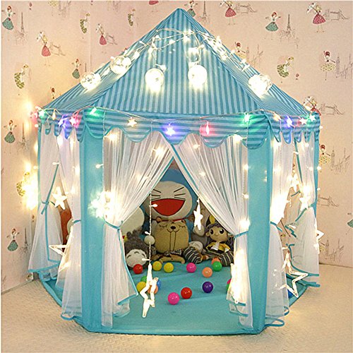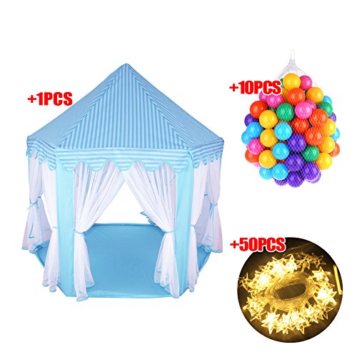 Noahas Hexagon Indoor Outdoor Princess Castle Children Play Tent Suitable for Girls and Boys Children Toddlers With Led Star Lights and Colorful Party Decoration Ocean Balls,53×55 inches,Blue