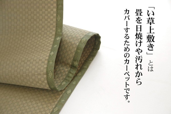 上敷きを敷くだけで畳のお部屋をリフレッシュ出来ます。日焼けしてしまった畳のリフレッシュに、新品の畳を汚さないためのカバーにご使用下さい。