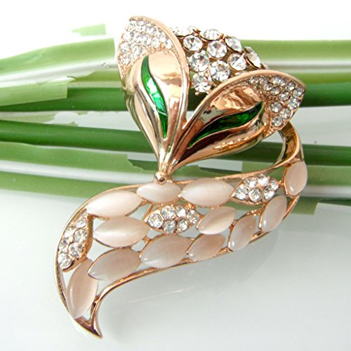 NAVACHI 18K GOLD PLATED CREATED-OPAL CRYSTAL FOX LOWRIE HEAD TAIL BROOCHES PINS