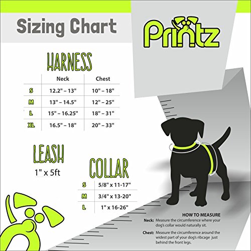 Please refer to the Printz Sizing Chart prior to selecting your harness. Selecting the correct size for your pet ensures the many benefits of the Printz Harness- including comfort and safety. If your dog's size is in between two different sizes, please select the larger size.
