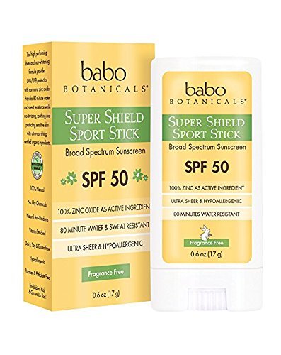 Babo Botanicals Super Shield SPF 50 Natural Sport Stick Fragrance Free Sunscreen, 0.6 Ounce