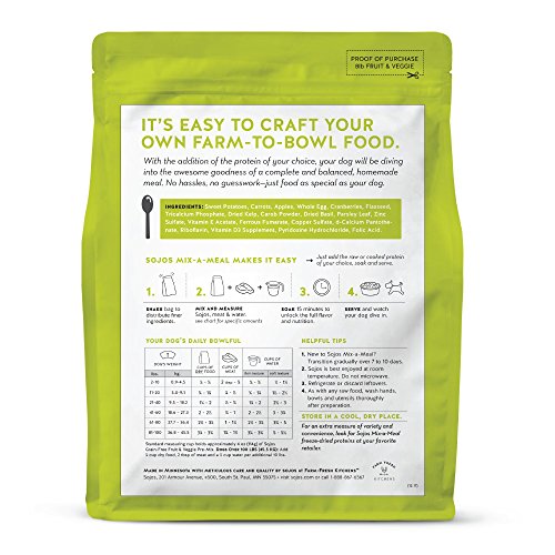 Pick a Sojos Pre-Mix—add the meat, poultry or fish of you choice, and let the fun begin. With Sojos Mix-a-Meal, it’s easy to make homemade meals as special as your dog. No mess, no guesswork, and no end to the possibilities.Feature