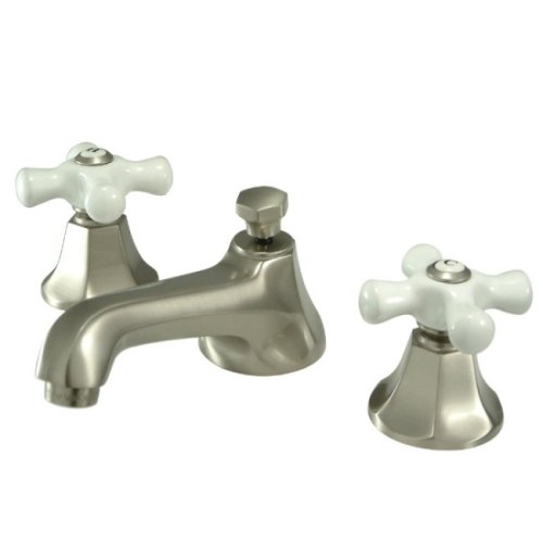 Kingston Brass KS4468PX Metropolitan Widespread Lavatory Faucet with Porcelain Cross Handle, Satin Nickel