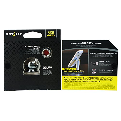 Simply attach the circular magnet to the center of your phone, adhere the cell phone car mount to your dashboard with 3M adhesive pad, and let magnetic power do the rest. Speed bumps, potholes, quick turns? No problem. The Steelie Car Mount kit is made with high-quality steel, machined aluminum, flexible silicon and 3M adhesive pads. Because of its fumble-free design, unlike other car phone holders, the Steelie Car Mount kit is legal in all 50 United States. Plus, when you reach your destination and detach your phone from the smart phone or iPhone car mount, the Magnetic Phone Socket lets you attach your phone to any other convenient metal surface! Refrigerator doors, metal shelving, filing cabinets, you name it.