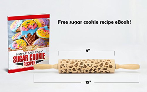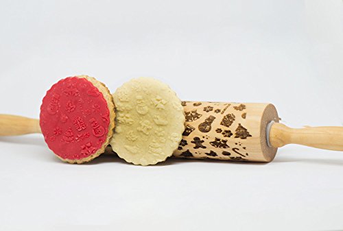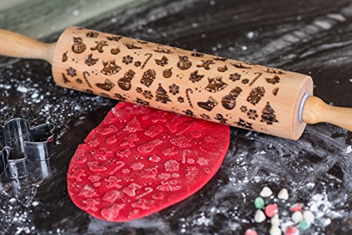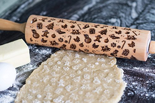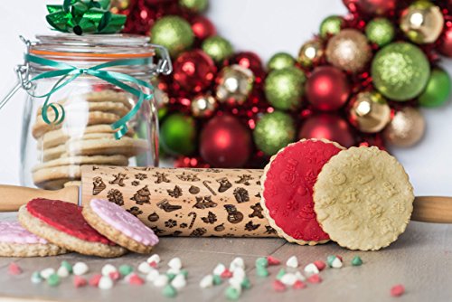 Decorative Christmas Embossed Rolling Pin for baking, Beautiful Laser Engraved Bamboo wood material makes amazing textured cookies and fondant for the holidays,Great gift for mothers and grandmothers!