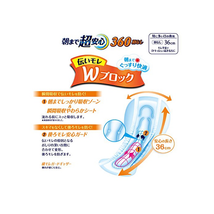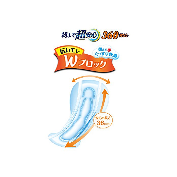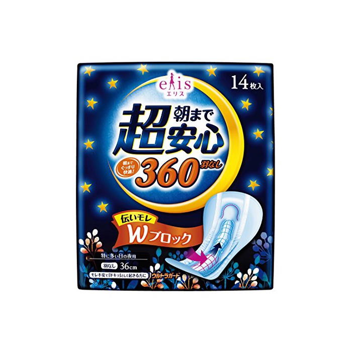 원본상품명: エリス ウルトラガ?ド 朝まで超安心360 (特に多い日の夜用) 羽なし 36cm 14枚入