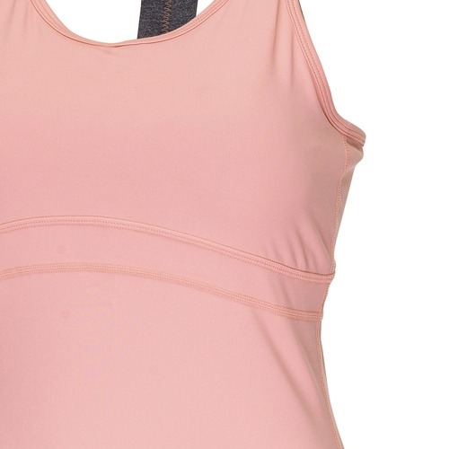 MD'S COMMENT오픈백 디자인과 스트랩에 그래픽을 추가한 여성스럽고 트랜디한 아이템입니다. 디테쳐블 캡이 내장되어 있어 운동시 하나만 편안하게 입을 수 있습니다.