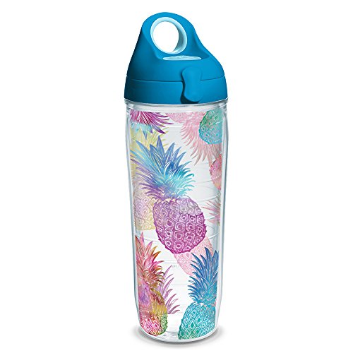 Tervis 1231310 Watercolor Pineapple Wrap Water Bottle with Turquoise WB Lid, 24 oz, Clear
