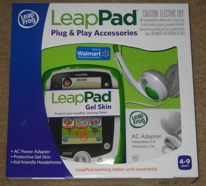 -. Binding : Toy -. Brand : 5Star-TD -. EAN : 0708431637504 -. Feature : AC adapter lets kids play longer while conserving batteries / Headphones allow parents to enjoy quiet time while kids enjoy playtime / The gel skin protects the LeapPad wherever kids are playing and learning / Leapfrog LeapPad Accessories are appropriate for children ages 4 to 9 years / LeapPad learning tablet sold separately -. IsAdultProduct : 0 -. Label : LeapFrog -. Manufacturer : LeapFrog -. MPN : 540-13125-A -. PackageQuantity : 1 -. PartNumber : 540-13125-A -. ProductGroup : Toy -. ProductTypeName : TOYS_AND_GAMES -. Publisher : LeapFrog -. Studio : LeapFrog -. Title : LeapFrog LeapPad Learning Tablet Plug & Play Accessories (Green) Gel Skin, AC Adapter and Headphones -. UPC : 708431637504