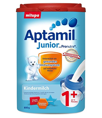 Milchgetränk zur besonderen Ernährung von Kindern im Wachstumsalter ab 1 Jahr Aptamil Junior 1+ enthält Pronutra+TM - eine einzigartige Mischung ausgewählter Zutaten: - patentierte Prebiotika (scGOS/lcFOS 9:1) - Fischöl - Vitamin A,C,D Pronutra+TM enthält Vitamin A, C und D, die auf natürliche Weise zu einem gesunden Immunsystem beitragen. >> Milchgetränk zur besonderen Ernährung von Kindern im Wachstumsalter ab 1 Jahr >> ideal als Milchgetränk zu den Mahlzeiten, wie Frühstück, Abendessen oder einfach für zwischendurch >> gut verträglich >> einfach zu zubereiten & zu dosieren - dank der Aptamil-Packung >> glutenfreiFeature