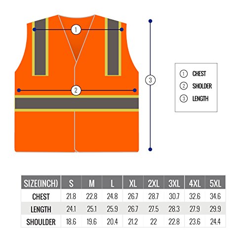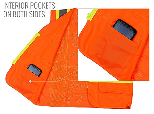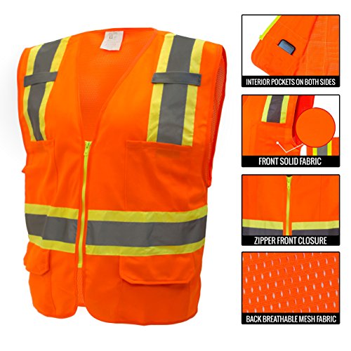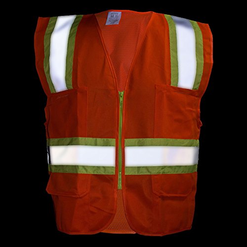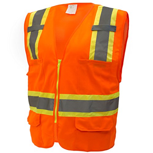 RK Safety 9811 Two Tone High Visibility Safety Vest with Reflective Strips and Pockets - ANSI/ ISEA Standard- Class 2 (Small, Neon Orange)