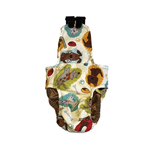 (Barkertime)/Pet Supplies/Litter Housebreaking/DIRECT FROM USA/Dog Diaper Overall - Made in USA - Doggie with Bones on Cream White Escape-Proof Washable Dog D...