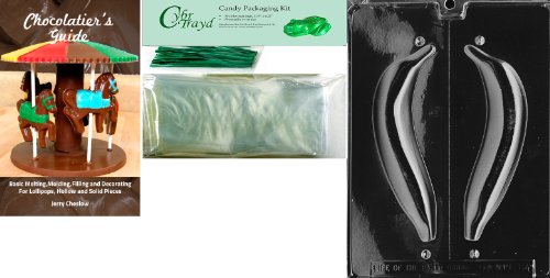 Cybrtrayd MdK50GRBk-F064 3-D Banana Fruits and Vegetables Chocolate Candy Mold with Chocolatier's Bundle, Includes 50 Cello Bags, 50 Green Twist Ties and Chocolatier's Guide