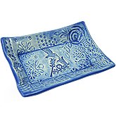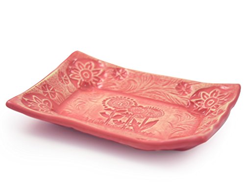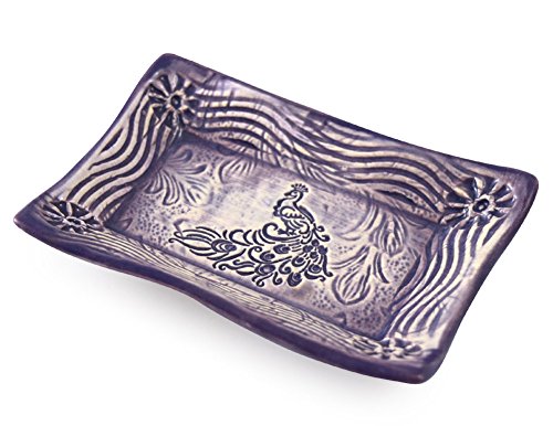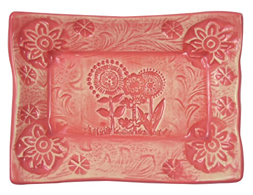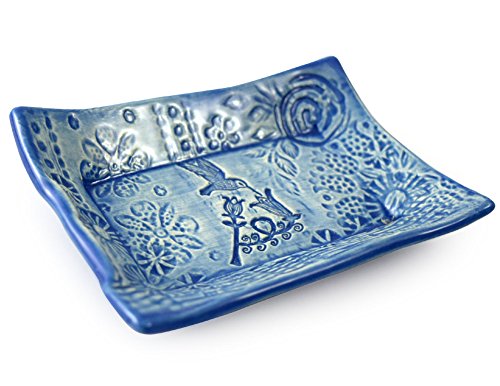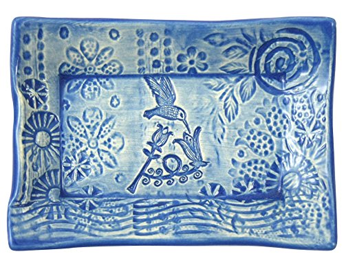 -. Feature : Sweet little dish brings a splash of color and handmade style to your sinkside / Formed by hand of earthenware clay, each dish is individually impressed with layers of patterns and textures / Fully glazed, food-safe, and dishwasher safe, so the dish may instead be used for other purposes - small serving dish, jewelry dish, or key holder / 4-1/2" x 3-3/8" / Handmade in the USA