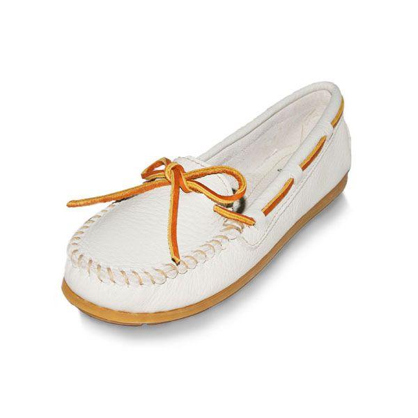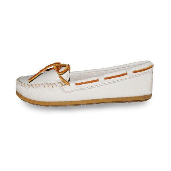 クラシックなボートモックをミネトンカ風にアレンジされた一足。