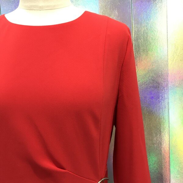 허리라인 셔링이 멋스러운 세련된분위기의 H라인원피스입니다