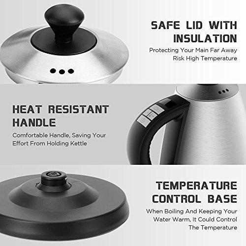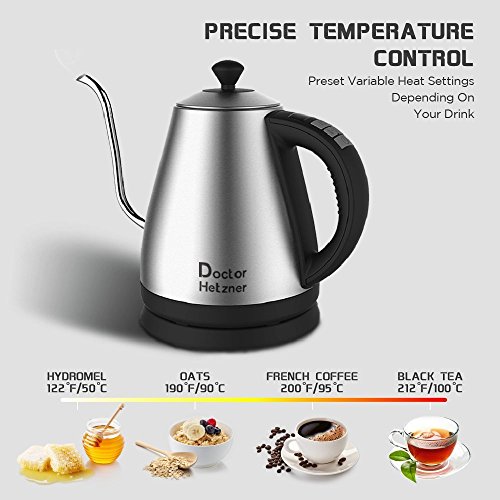 Doctor Hetzner Wasserkocher,Edelstahl Kessel mit Temperatureinstellung,Elektrische Kettle mit Warmhaltefunktion,Wasserkessel 1L