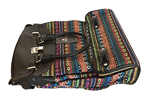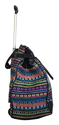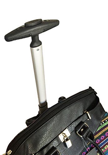 -. Feature : Color: Black, Pink, Yellow, Green, Orange, and White / Padded laptop area can fit laptop 12" wide, 12" tall and 2" thick using securing velcro strap. Padded laptop area can fit laptop 12" wide, 17" tall and 2" thick without using securing velcro strap. / Material: Polyester Canvas with Polyurethane Trim / Pattern: Diamonds and Stripes / Size: 19" H x 17" L x 9" W / Weight: 4.5 lbs / Additional Info: Height From Top of Handle to Floor with Handle Fully Extended: 35"