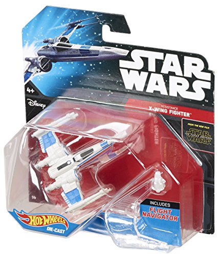 -. Binding : Toy -. Brand : Hot Wheels -. EAN : 0887961127911 -. Feature : Kids will love this assortment of iconic Star Wars vehicles / Flight Navigator lets kids "fly" their starships / Flight Navigator doubles as a display stand so kids can show off their collection / In a collectible scale that's small enough to fit in a pocket / Makes a great gift for fans of all ages -. IsAdultProduct : 0 -. Label : Mattel -. Manufacturer : Mattel -. Model : CKJ71 -. MPN : CKJ71 -. NumberOfItems : 1 -. PackageQuantity : 1 -. PartNumber : CKJ71 -. ProductGroup : Toy -. ProductTypeName : TOYS_AND_GAMES -. Publisher : Mattel -. Studio : Mattel -. Title : Hot Wheels, Star Wars: The Force Awakens, Resistance X-Wing Fighter (Closed Wings, Blue) Die-Cast Vehicle -. UPC : 887961127911 -. Warranty : 1 year warranty against manufacturer defects