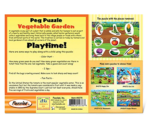 -. Binding : Office Product -. Brand : Puzzled -. EAN : 0788679147768 -. Feature : Great educational tool for quality time for you and your family / Your little one will learn as they play / The perfect tool to develop shape orientation and memory for the youngest one in your family / Exquisitely made of 100% wood / Product Size 11.5"Lx8.5"Wx0.25"H -. Label : Puzzled -. Manufacturer : Puzzled -. MPN : 4375 -. PartNumber : 4375 -. ProductGroup : Toy -. ProductTypeName : TOYS_AND_GAMES -. Publisher : Puzzled -. Studio : Puzzled -. Title : Puzzled Vegetables Educational Peg Wooden Puzzle - Vegetables Theme - Affordable Gift For Your Little One - Item #4375 -. UPC : 788679147768