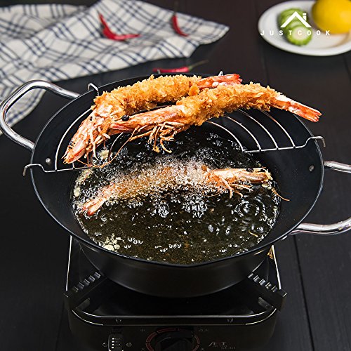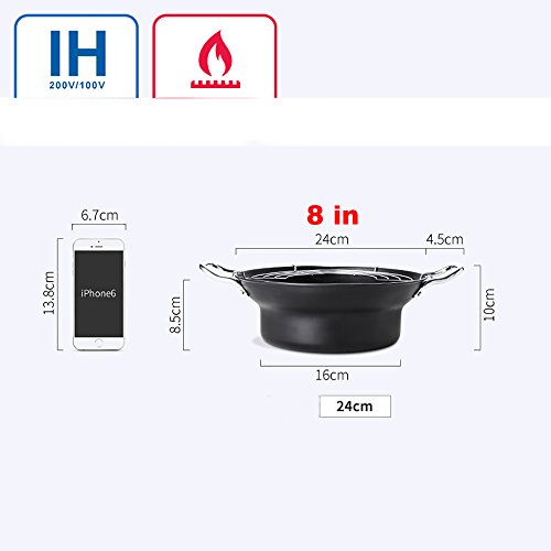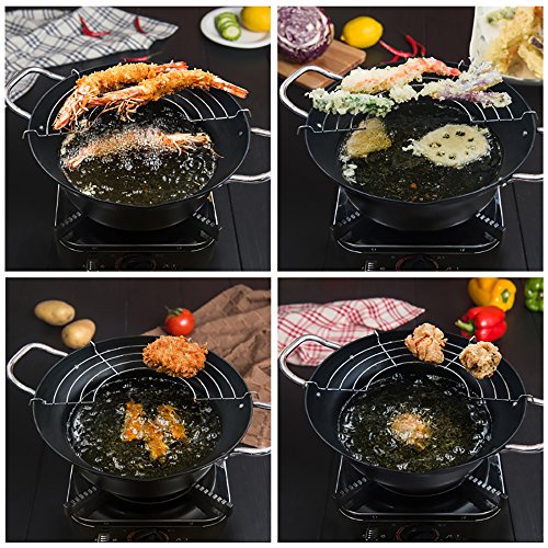 If you need to fry a tempura at home, try this 5 stars -convenient Tempura Pot Fryer. The narrow shape of the bottom allows you to use less oil, and place this small pot neatly on the gas range, electric range or halogen range. It's made with iron which is a great heat conductor, so the pot quickly heats cooks food effectively.