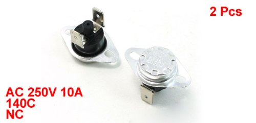 -. Feature : Product name : plastic thermostat; model. No : Ksd301 / Action Type : nc; action temperature : 140C / Voltage : 10A AC 250V; size(each) : 3.3 x 1.9 x 2Cm/1.3" x 0.75 inch x 0.78"(L*t) / Material : metal, plastic; color : Black, Silver tone / Net weight : 15G; Package Content : 2 x plastic thermostat