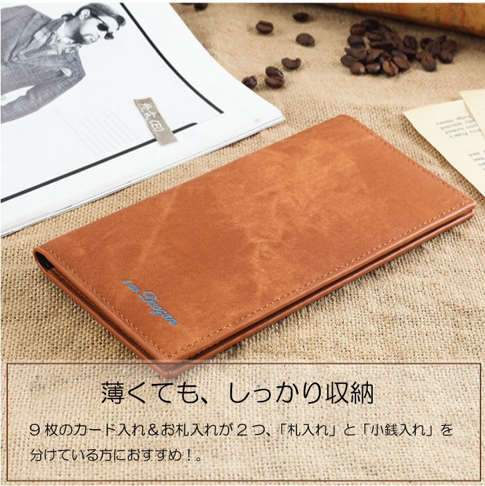 ●特徴 ・コンパクトだから、持ちやすい。荷物と一緒でも、かさばりません。小銭入れなし ・カードポケット×9 お札入れ×2 ・キャンパスの素材のお財布 ・上に樹脂でコーティングをし強度アップのしっかりしたお財布です。 ・カラーは4色用意しています。自分使いにもプレゼントにも最適♪ ・厚みは「なんと1㎝」という薄さ! ・スーツのポケットに入れておいてもシルエットを崩さずに収納できます。 ・大きく開くので、お札やカードがサッと取り出せる便利なお財布です♪
