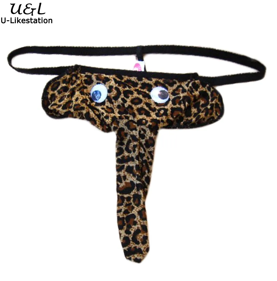 New Novelty Sexy Men G Strings Elephant Underwear Man Thongs Pouch Leopard Grain Sexy Lingerie Men