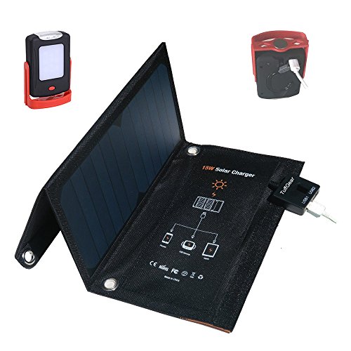 -. Title : TuffGear 15W Solar Panel bundle USB camping light ,Foldable Solar panel USB Charger portable and highly efficient Solar Panel for iPhone, iPad, iPods, Samsung,