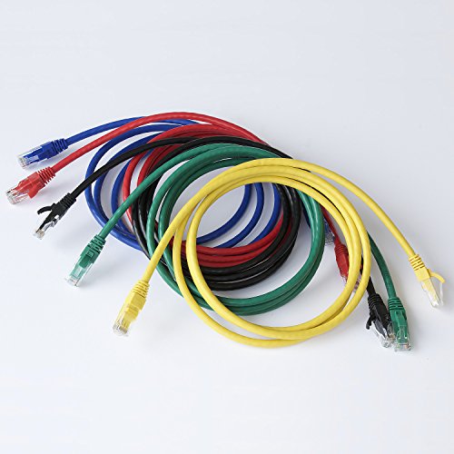 Cat6 Ethernet Patch Cables - 5 Pack (5 ft Cord) - RJ45 Gigabit Cat6e (Snagless) LAN Cable (s) for Fast Network & Computer Networking - Multi Color (Black/ Green / Yellow / Blue / Red)