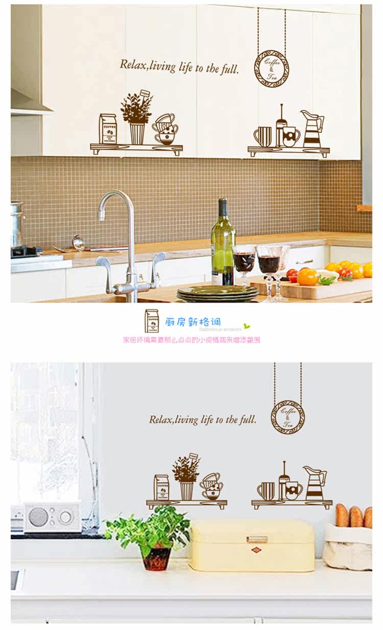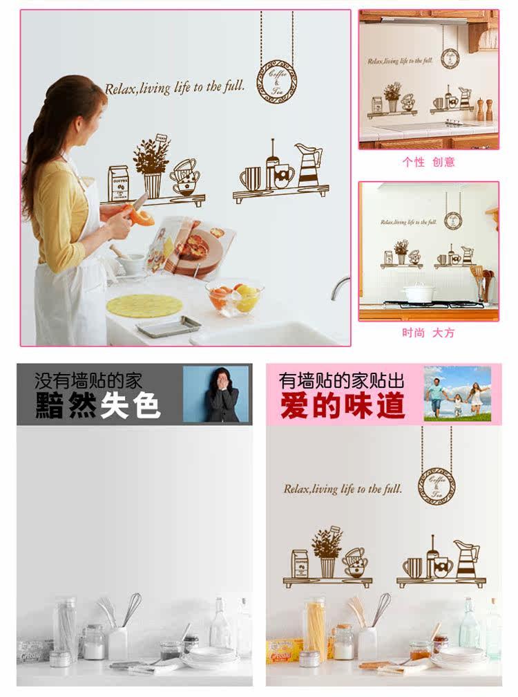 厨房餐具用具墙贴装饰品纯色盆栽贴纸餐厅布置蛋糕店店铺橱窗贴画