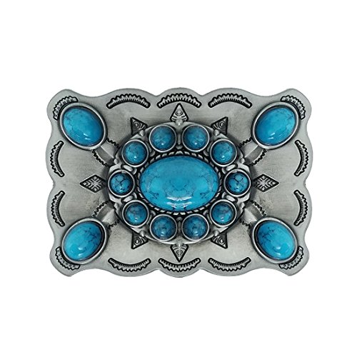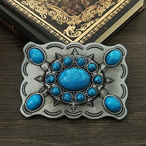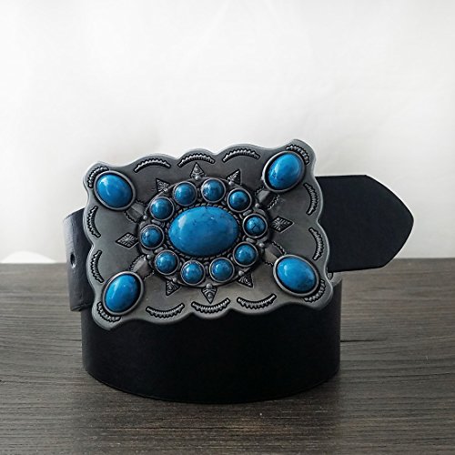QUKE Mens Women Native American Western Art Blue turquoise Stone Silver Tone Belt Buckle