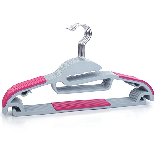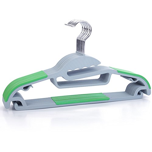 -. Feature : Material:ABS+TPE / Size:Length:16.34" / Super-slim design, compact and sturdy .Maximize closet space. / Pack of 10 ABS hangers, available in seven colors, decorate your wardrobe. / Multi-function hanger, Perfect for clothes, suit, jacket, scarves, shawls, belts, bra and tie.