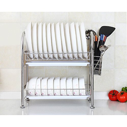 NEX Dish Rack Stainless Steel Two Tier Draining Rack Rustless Storage Rack with Chopstick Holder(D003)