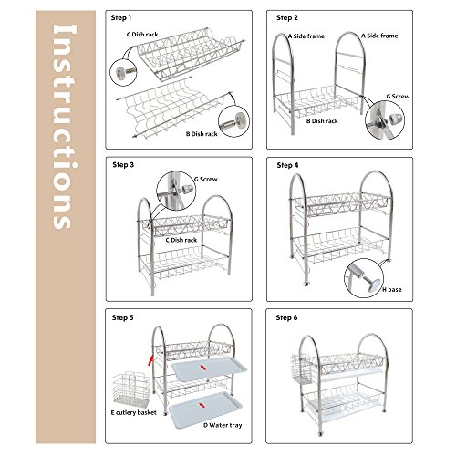 NEX HT-KC815S-L 2-Tier Dish Drainer with Chopstick Holde, Stainless Steel