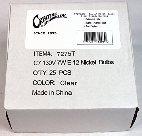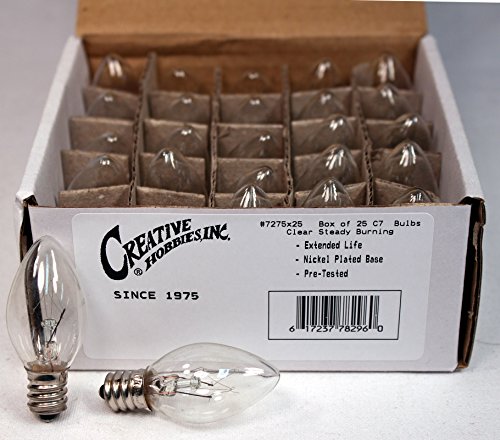 Creative Hobbies 3228x25 (25 pack) - 7C7/CL, 7 Watt, C7 Night Light, Longer Life 130 Volt, Clear, E12 Candelabra Base, Incandescent Light Bulb, 25 Pack