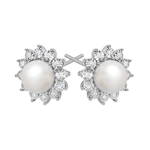 -. Feature : 7x7 mm Freshwater Cultured Pearls / 1/8 ct Round-Cut Diamonds / Color I-J, Clarity I2-I3 / Crafted in 14K White Gold / Measures 1/2 by 1/2 Inches