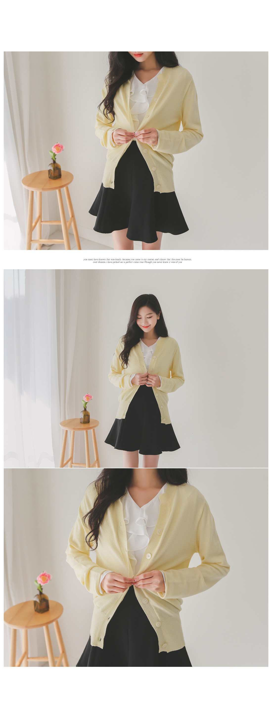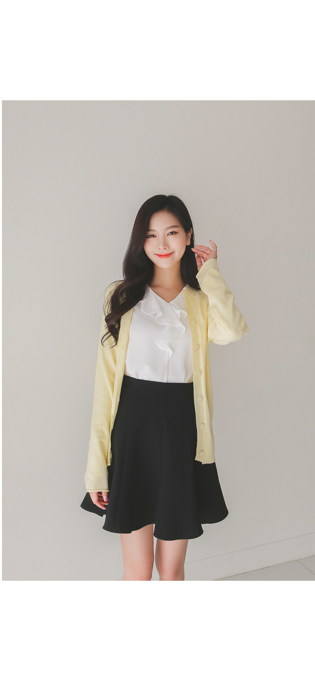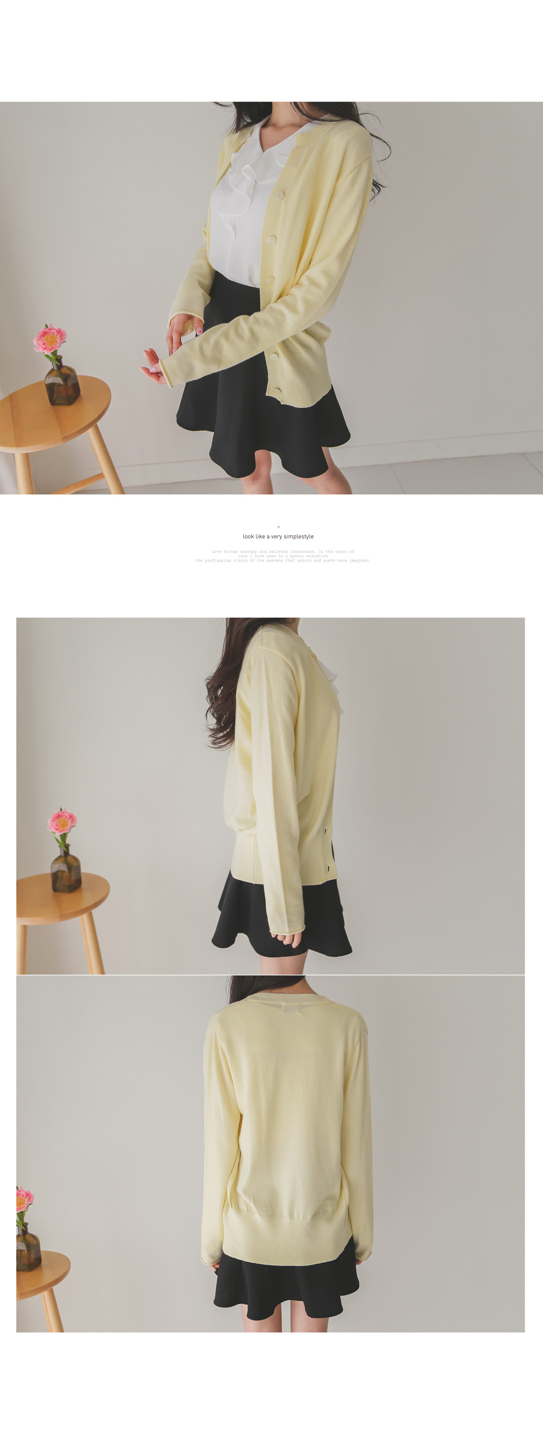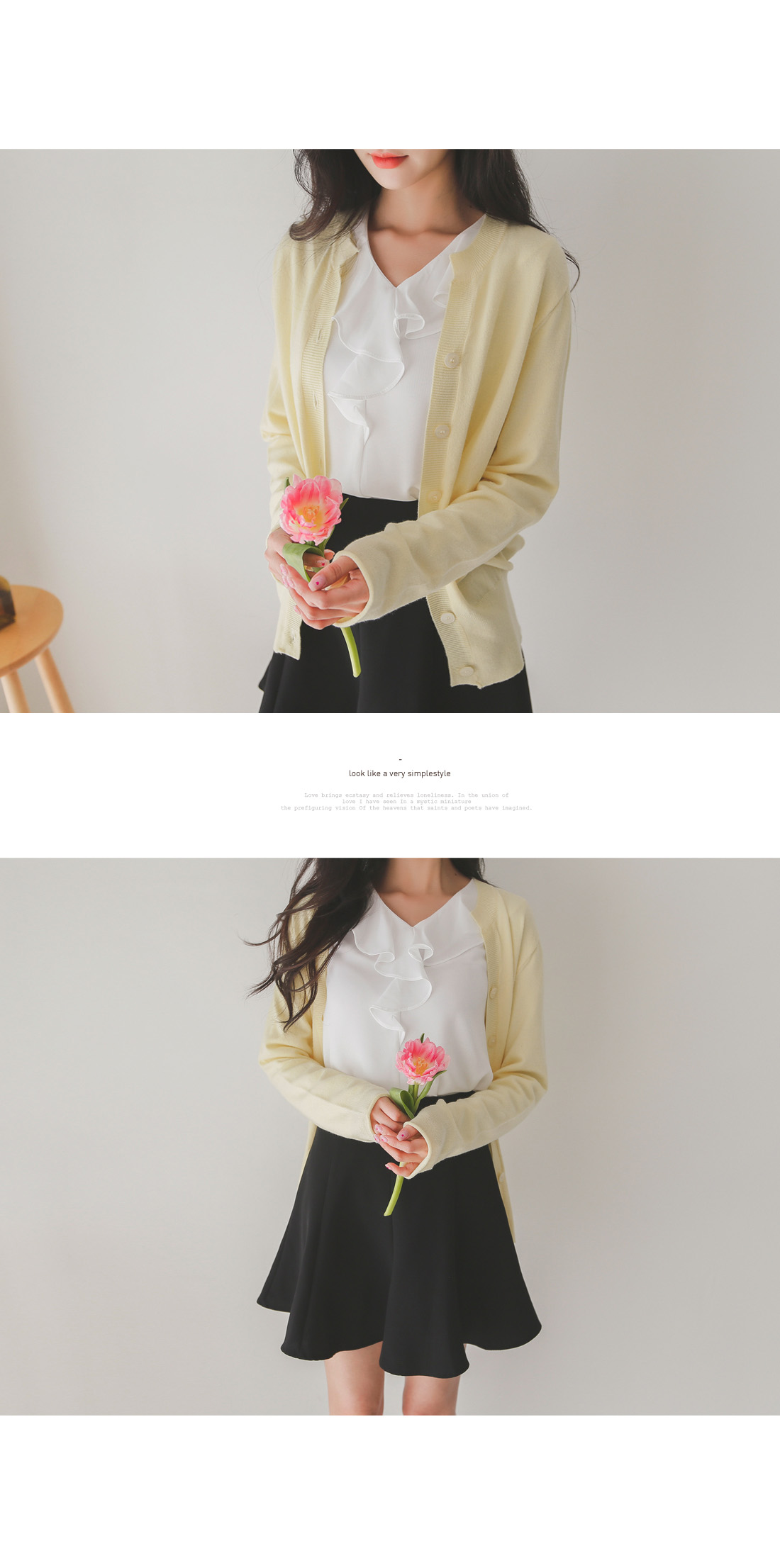 버튼을 모두 클로징해서 니트탑처럼 연출해도 좋아요!