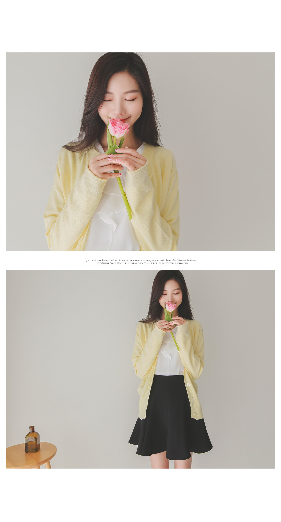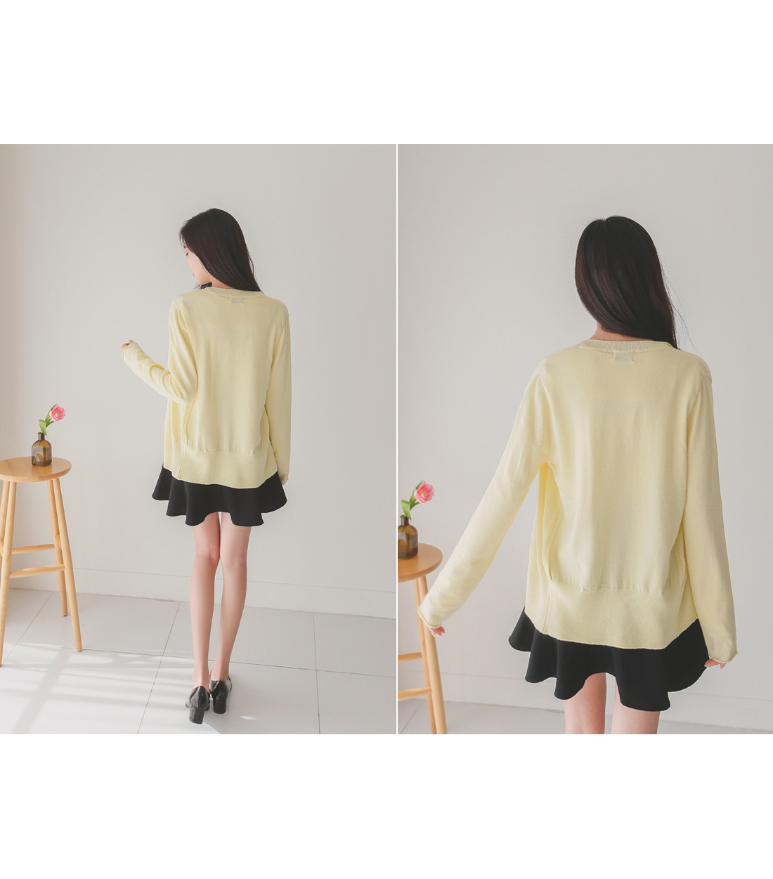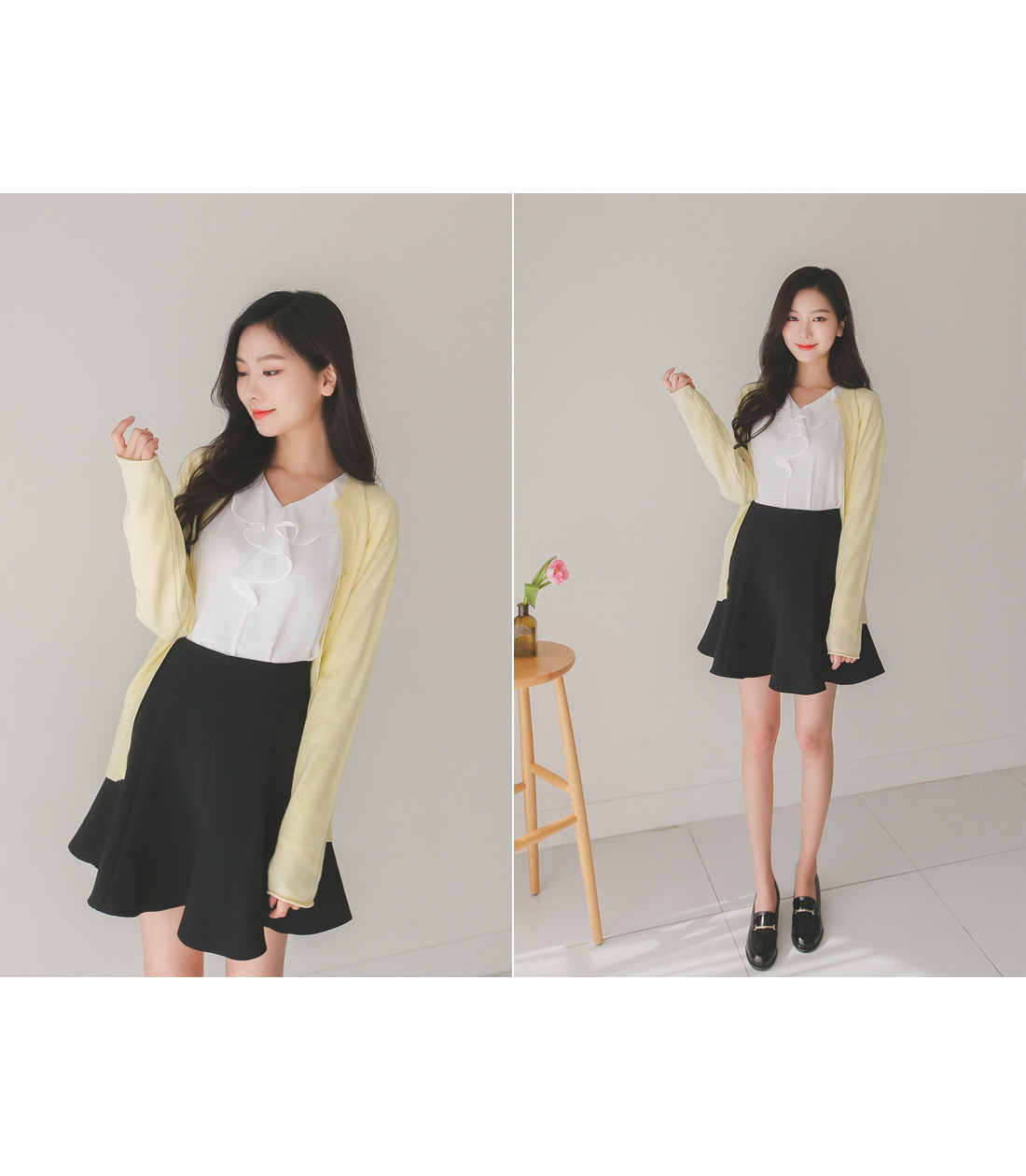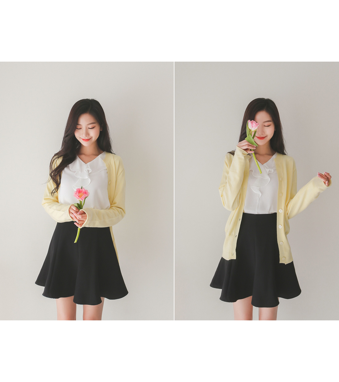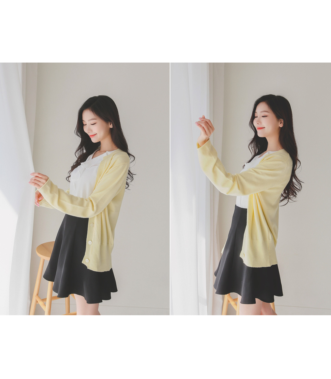 버튼을 모두 클로징해서 니트탑처럼 연출해도 좋아요!