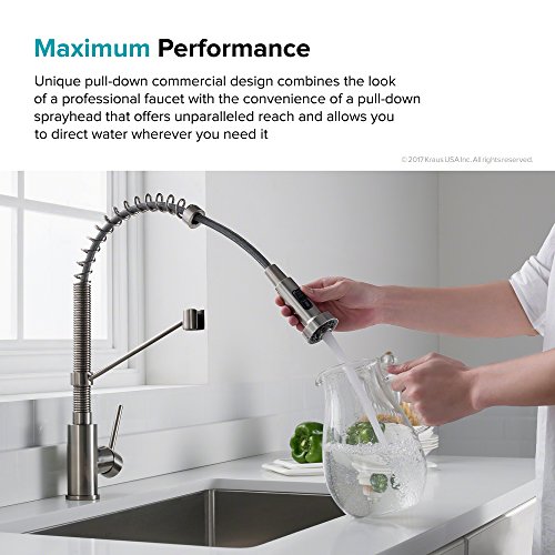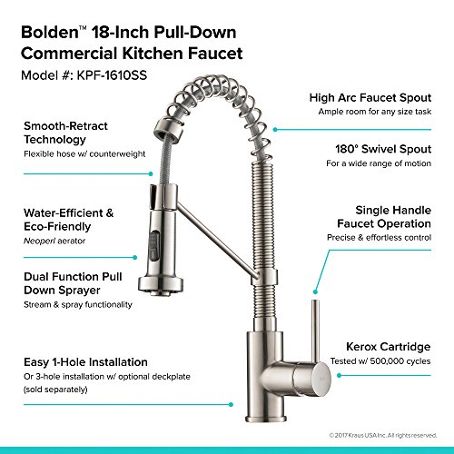 Kraus KPF-1610SS Bolden Single Handle 18-Inch Commercial Kitchen Faucet with Dual Function Pull Down Sprayhead Finish, Stainless Steel