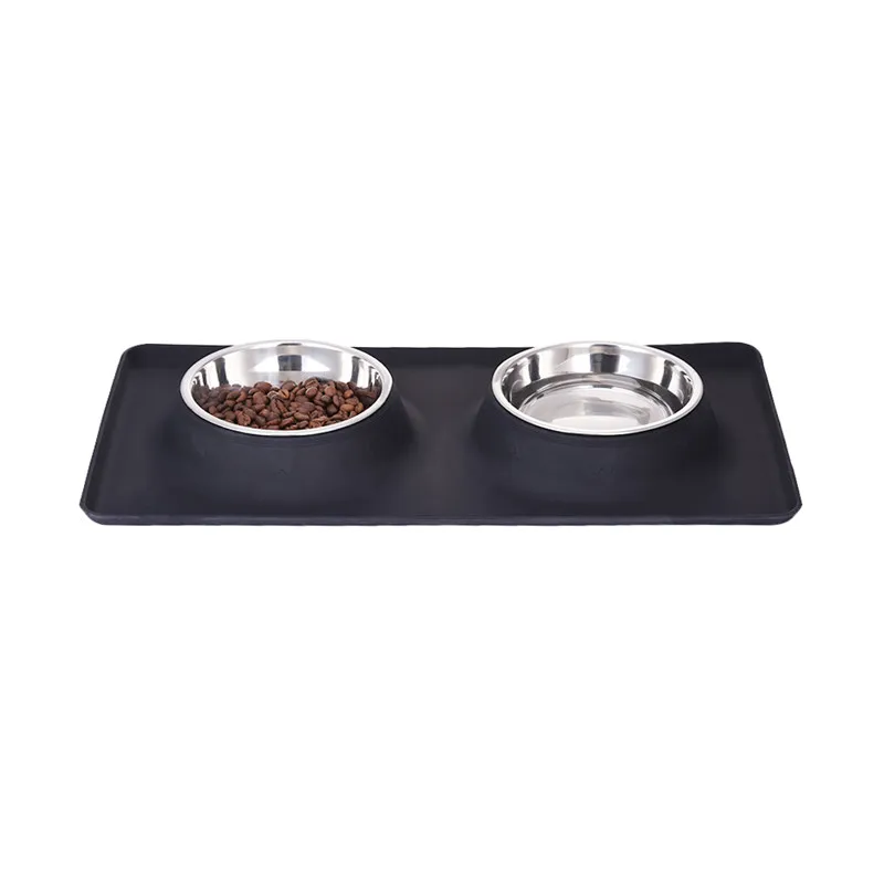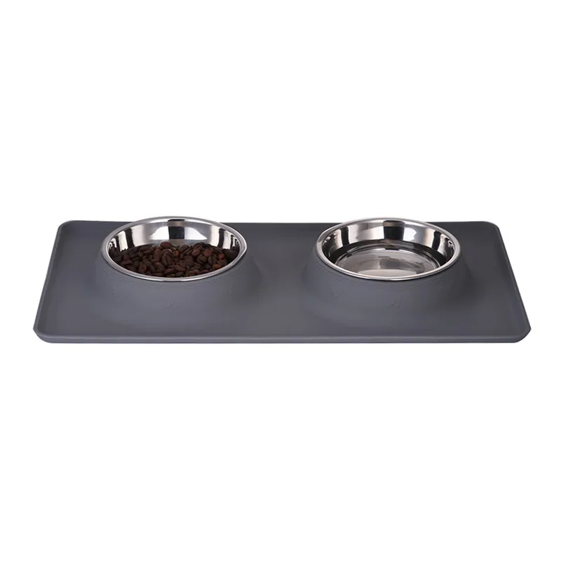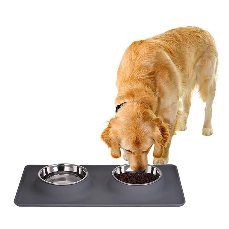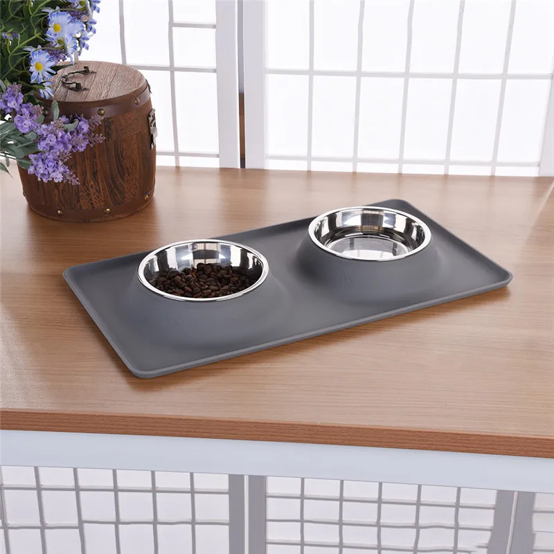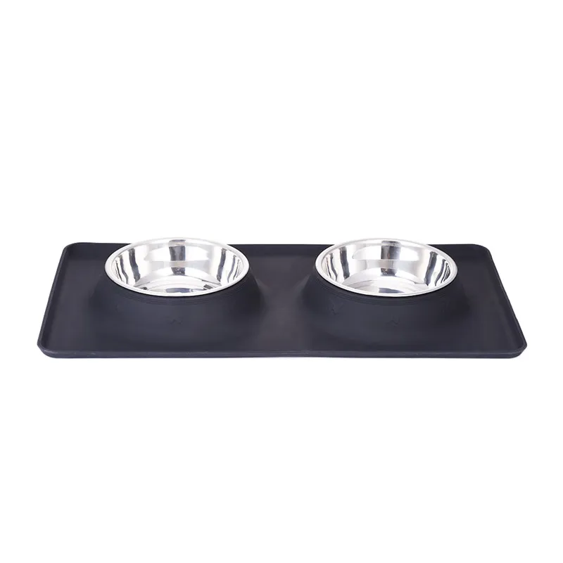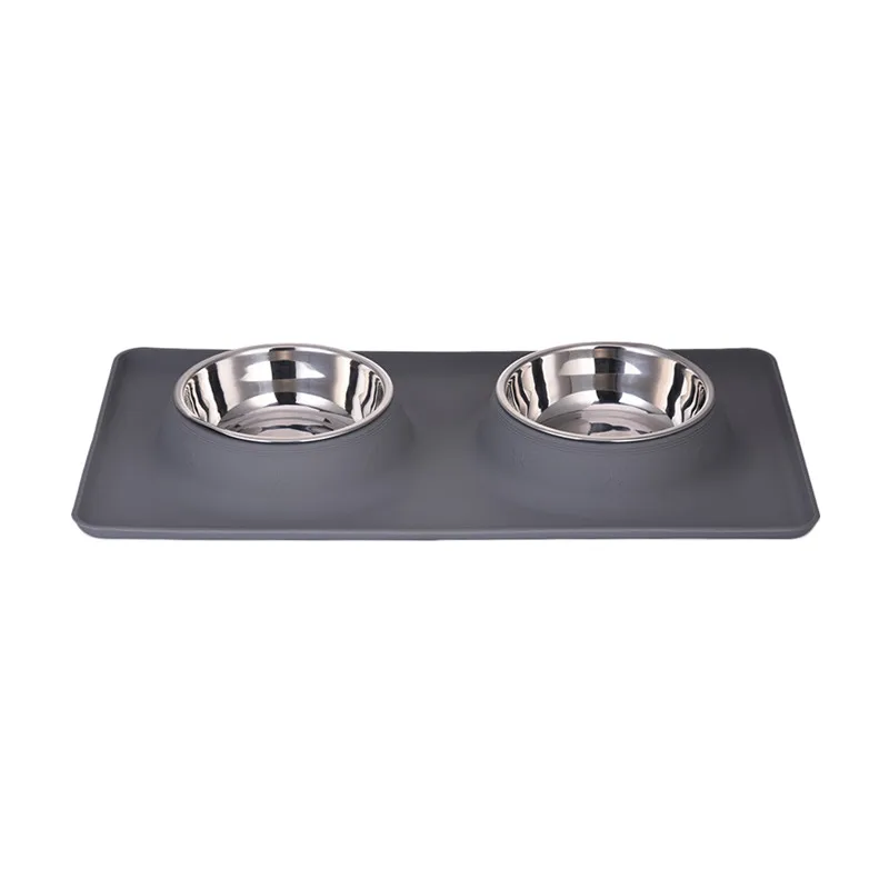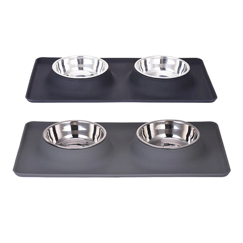 Dog Double Bowl Stainless Steel Travel Feeding Feeder Water Bowl For Pet Dog Cat Puppy Food Bowl Water Dish With With No Spill Non-Skid Silicone Mat