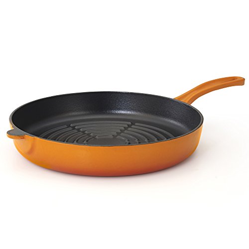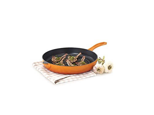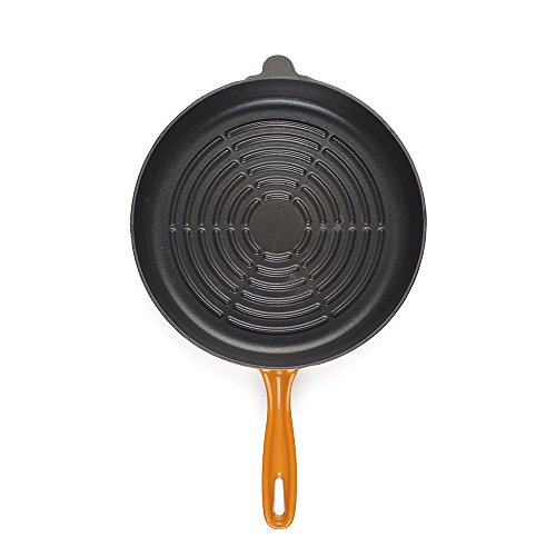 Signature grill pan with multi-layer durable exterior enamel that has a shiny unique look and an extreme resistance to cracking and chipping. With its superior heat retention and distribution, heats evenly and slowly; tolerates up to 500F. Roast a chicken, prepare pancakes, eggs or bacon; or bake an apple crisp with this multi-functional grill pan. Durable non-stick interior offers superb food release; also ideal for healthier cooking with little or no added fat/oil. Authentic and traditional craftsmanship, combined with innovative design and highest quality anti-bacterial material. Chambery series is made of cast-iron products made with high quality multi-layer coated enamel exteriors. It is a perfect combination of attractive colors and functionality; and will help you create an elegant setting for your table or kitchen. Essenso perfectly combines modernity of cookware and tradition of culinary arts. Enjoy healthy and tasty meals. Whatever you are cooking, nutritional values and flavors will be maintained well. As a perfect combination of design and functionality, this product features lips to pour liquid and well designed handle for easy grab. Enamel is a natural anti-bacterial material that provides healthy cooking and food storage. Using harsh detergents are not recommended. Clean it by softening the product in warm water and then removing the residues with a non-scouring sponge. We recommend using silicone or wooden kitchen utensils. Dish washer detergents may corrode your product and damage it over the long term. The products are suitable for all cooking stovetops including: ceramic, electrical, gas, induction and even in campfire.Feature