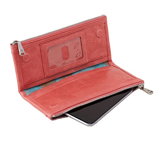 If you're looking for a wallet that's as versatile as you are then this Genuine Leather Vintage Taylor Clutch Wallet by Hobo is your ideal match. With a focus on the everyday woman, Hobo is all about making wallets and purses that are designed with all the features women are looking for in their accessories. A dual magnetic closure secures the 4 credit card slots, 3 bill slip pockets, and ID window w/ thumb glide when not in use giving you and added sense of protection. For quick access 2 additional zip pockets with snap closure and 2 zippered pockets are featured on the exterior for storing your phone, keys, or credit card. Measures 8.25" x 4" x 1".Feature