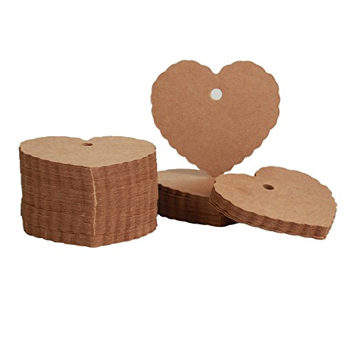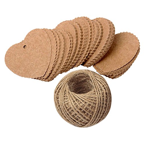 Brown Gift Tags, G2PLUS 100PCS Kraft Paper Gift Tags Wedding Favor Kraft Hang Tag Bonbonniere Favor Gift Tags with Jute Twine 30 Meters Long for DIY Crafts & Price Tags (Heart Shape-Brown)