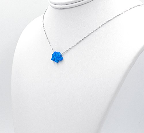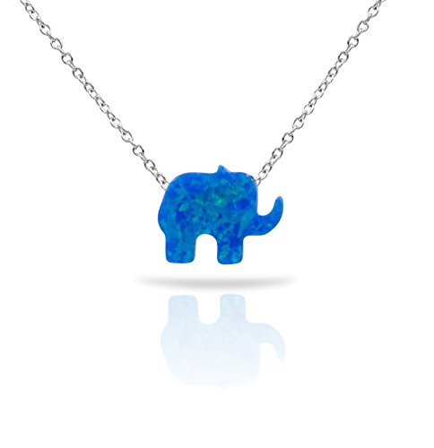 -. Title : Sterling Silver Pendant Necklace with Blue/White Opal Elephant Charm, Rhodium Plated 925 Silver, Adjustable Chain Length 16" - 18", with Jewelry Box