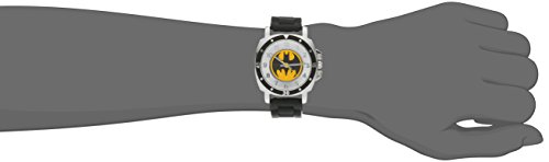 Black rubber strap Batman logo on silver sunray dial Buckle closure Round case Not water resistant Brand : DC Comics Item model num : BAT9032 MPN(PartNumber) : BAT9032 EAN : 0030506300625 Package Dimensions(LxWxH) : 8x8x8cm ; 113 g