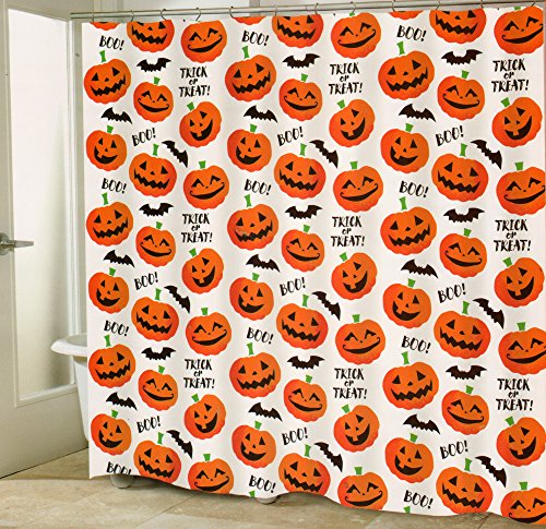-. Feature : Halloween pattern featuring Jack-O-Lantern pumpkins, bats, and the words Boo! and Trick or Treat! / Shower panel measure 72 x 72 inches. Standard size / Machine wash, Hang dry. Cool iron if needed. / Enhance your bathroom decor this Halloween with this bright and fun shower curtain