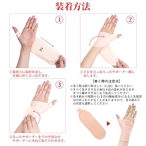 手首から親指までピッタリ包み込みしっかりホールドで、親指の付け根を適度に加圧し保護します。