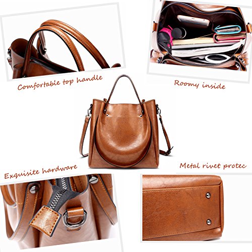 Mn&Sue Women Large Bucket Bag Shoulder Tote Purse Dual Use Top Handle Handbag Cross Body Satchel